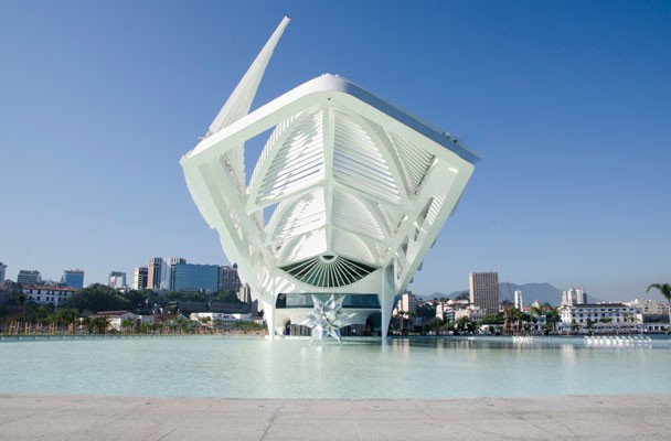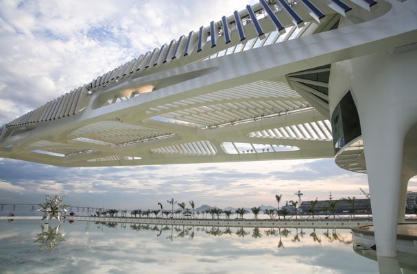 “La idea era que el edificio fuese lo más etéreo posible, casi fluctuando sobre el mar, como un barco, un pájaro o una planta”, explicó Santiago Calatrava, reconocido arquitecto español responsable del proyecto. La obra desarrollada por un consorcio de empresas brasileñas bajo la dirección del Ayuntamiento de Río de Janeiro, de la mano de la Fundación Roberto Marinho, llevó cinco años y u$s 55 millones de inversión. Ocupa 15.000 m2, su estrutura es de acero y tiene paneles fotovoltaicos móviles en el techo para captar la energia solar. Además, usa el agua de la Bahía de Guanabara para hacer funcionar el sistema de aire acondicionado y para abastacer los espejos de agua que lo rodean, junto con ciclovías y un área de recreación en un espacio total de 34.600 m2 en el antiguo muelle, Pier Mauá. Considerado uno de los arquitectos más destacados de la actualidad, Calatrava es autor también de la Ciudad de las Artes y las Ciencias en Valencia, y autor del Puente de la Mujer en Buenos Aires.