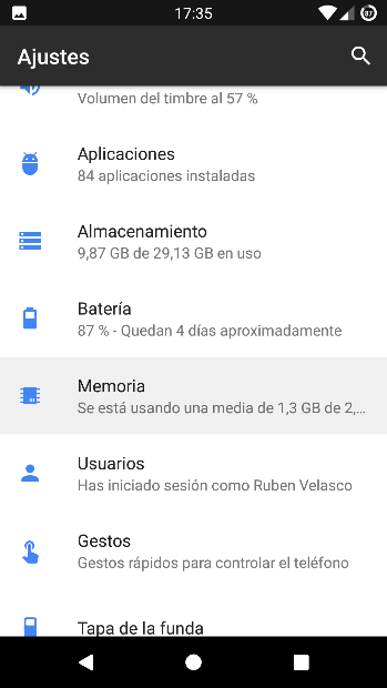 Como hemos dicho, esta función se encuentra disponible en el propio sistema operativo, por lo que no necesitaremos ninguna aplicación de terceros ni ninguna configuración avanzada como root. Para poder configurar estas aplicaciones, lo único que tenemos que hacer es abrir el menú de Ajustes de nuestro dispositivo e ir hasta el apartado “Memoria”.