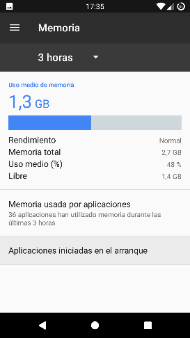 Veremos una nueva pantalla de configuración con un resumen sobre la memoria RAM de nuestro dispositivo que tenemos ocupada. En la parte inferior veremos un apartado llamado “Aplicaciones iniciadas en el arranque “. Pulsamos sobre él.