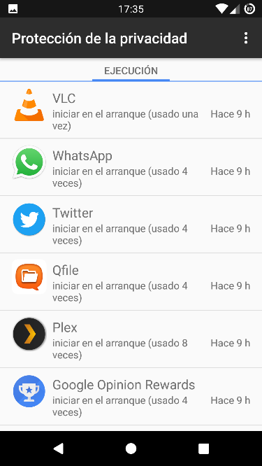 A continuación, nos aparecerá la lista de aplicaciones que se han iniciado por última vez en el arranque de nuestro Android.
