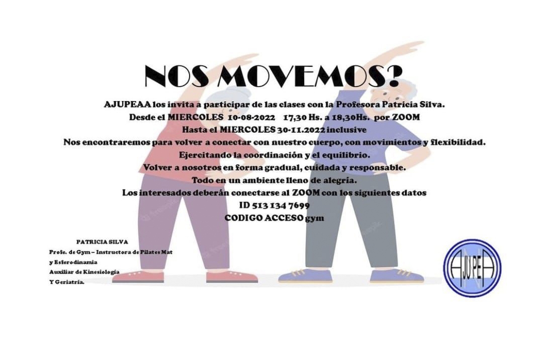 A través del convenio con AJUPEAA los afiliados de la AMFEAFIP podrán participar de clases por Zoom los días miércoles de 17.30 a 18.30 hs.