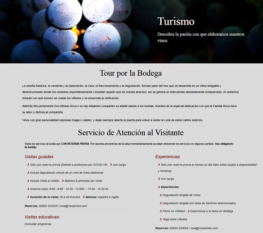 • 10% en las experiencias en bodega (consultas y reservas: de lun. a vie. hábiles de 8:00 a 16:00 hs Whatsapp 0260 4533028 ó roca@rocawines.com)