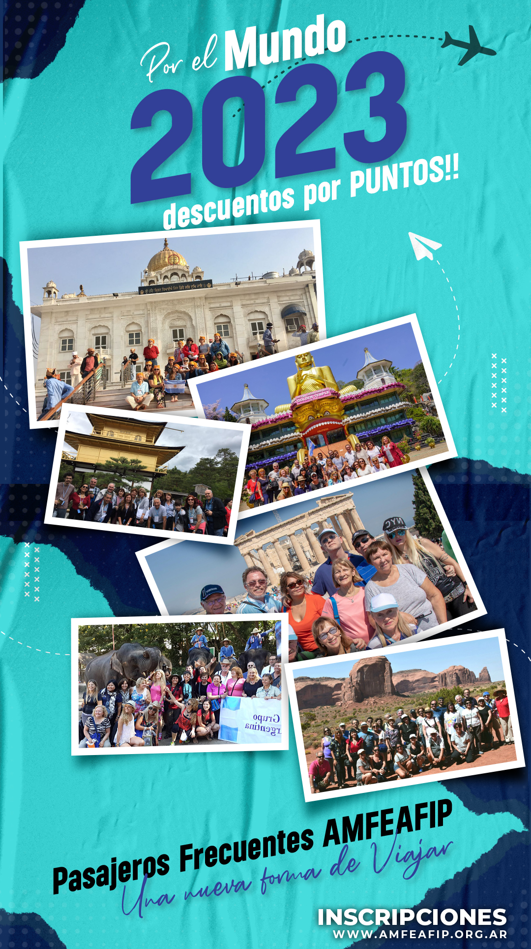 Ya se encuentra abierta la inscripción para las salidas al exterior del año 2023 con las cuales entrará en vigor el sistema de descuentos por puntos acumulados para pasajeros frecuentes de la AMFEAFIP.