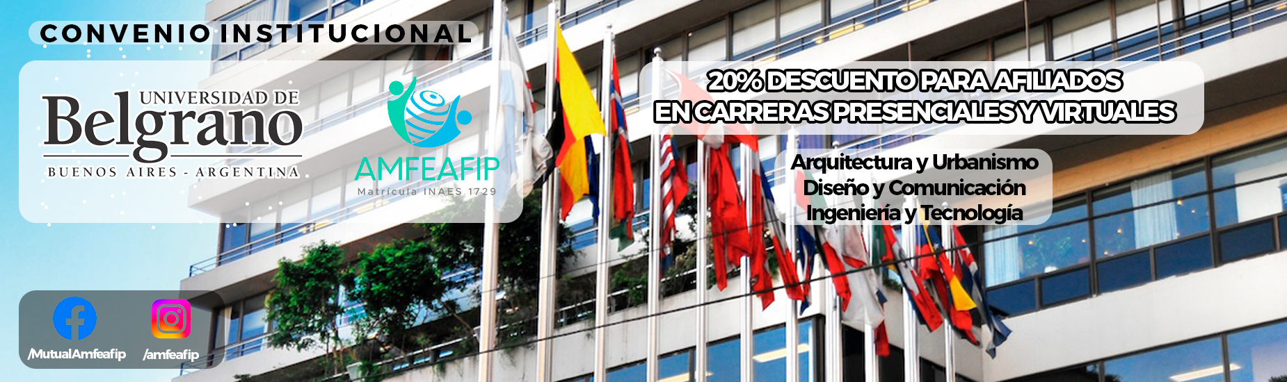 En este marco, la AMFEAFIP suscribió un auspicioso Programa de Colaboración Recíproca con la prestigiosa Universidad de Belgrano (UB), para trabajar en forma conjunta, en todo lo relativo a proyectos y programas que contribuyan al desarrollo académico y profesional de ambas instituciones.
