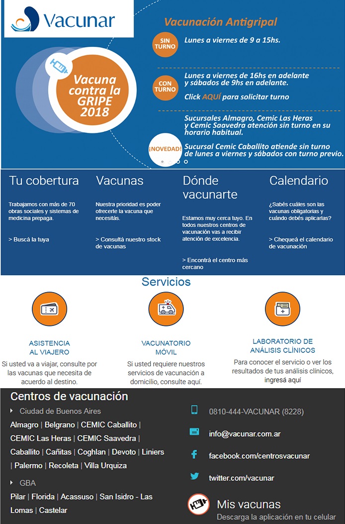 Por esta razón, en VACUNAR se ocupan de la educación, atención y promoción en el área de la vacunación, convencidos de que vacunar es prevenir (Teléfono de contacto 0810-444-VACUNAR (8228).