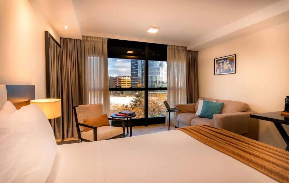 Todas nuestras 65 AMPLIAS HABITACIONES están equipadas con mobiliario moderno y contemporáneo, equipamiento tecnológico y amplios ventanales de piso a techo que ofrecen una gran luminosidad natural en todas las habitaciones.